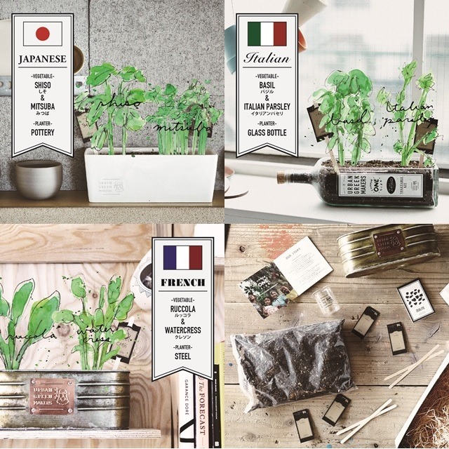 フレンチ、イタリアン、ジャパニーズと、それぞれの国のイメージで、パッケージからデザインし、プランターも育てる野菜も選ばれています。