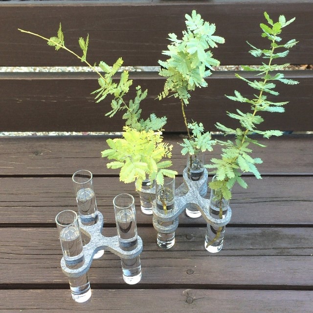 細長いガラスチューブが集まった花器なので、植物を1・2本ずつ入れるだけで保定されます。