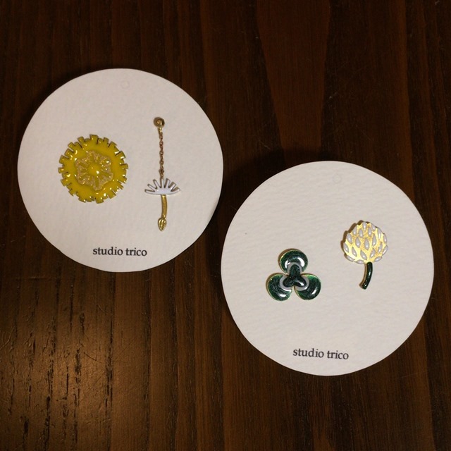 左右のモチーフが異なりますが、花と種、花と葉、と関連性があり、その組合せを楽しむピアスです。